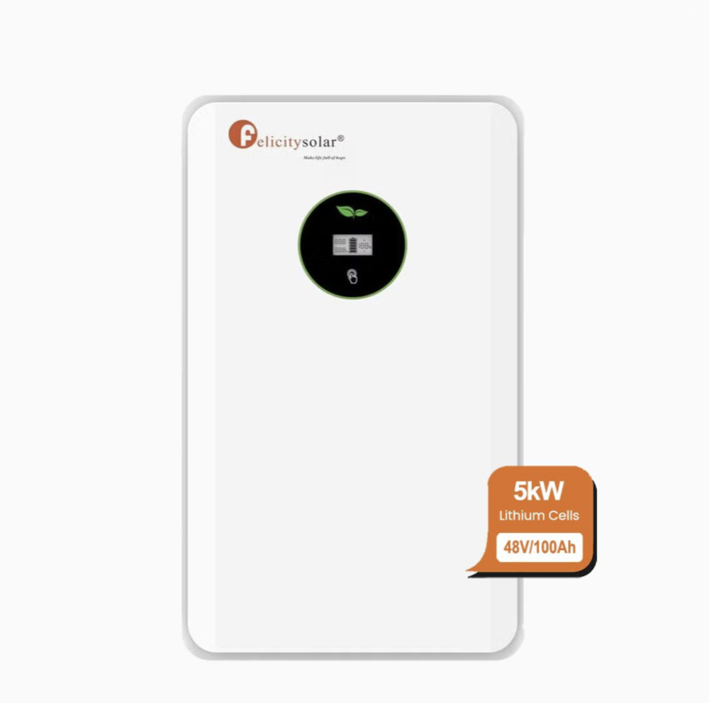 بطارية Felicity FLA48100 من نوع ليثيوم فوسفات الحديد (LiFePO₄) بسعة 5.12 كيلوواط/ساعة وجهد اسمي 51.2 فولت، مصممة لتوفير أداء موثوق لأنظمة الطاقة الشمسية والتطبيقات الاحتياطية.