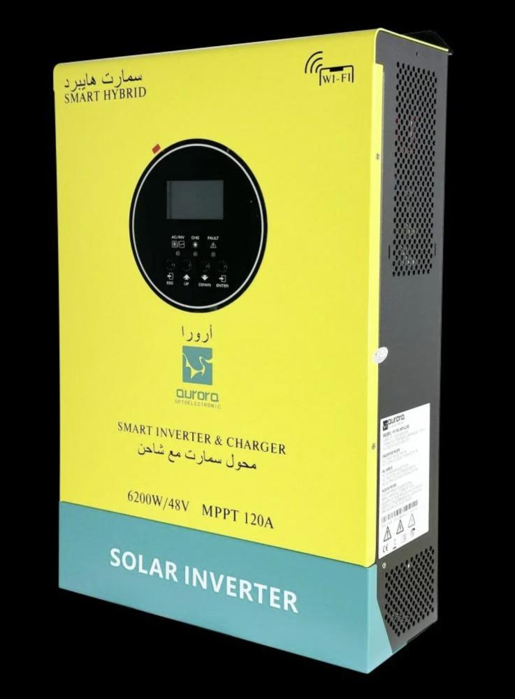 محول أرورا 6,200W 48V 120A MPPT – كفاءة عالية للطاقة الشمسيةمحول أرورا 6,200 واط مع تقنية MPPT يضمن استغلال كامل للطاقة الشمسية بكفاءة 90%-93%، مع موجة جيبية نقية مناسبة للأجهزة الحساسة.