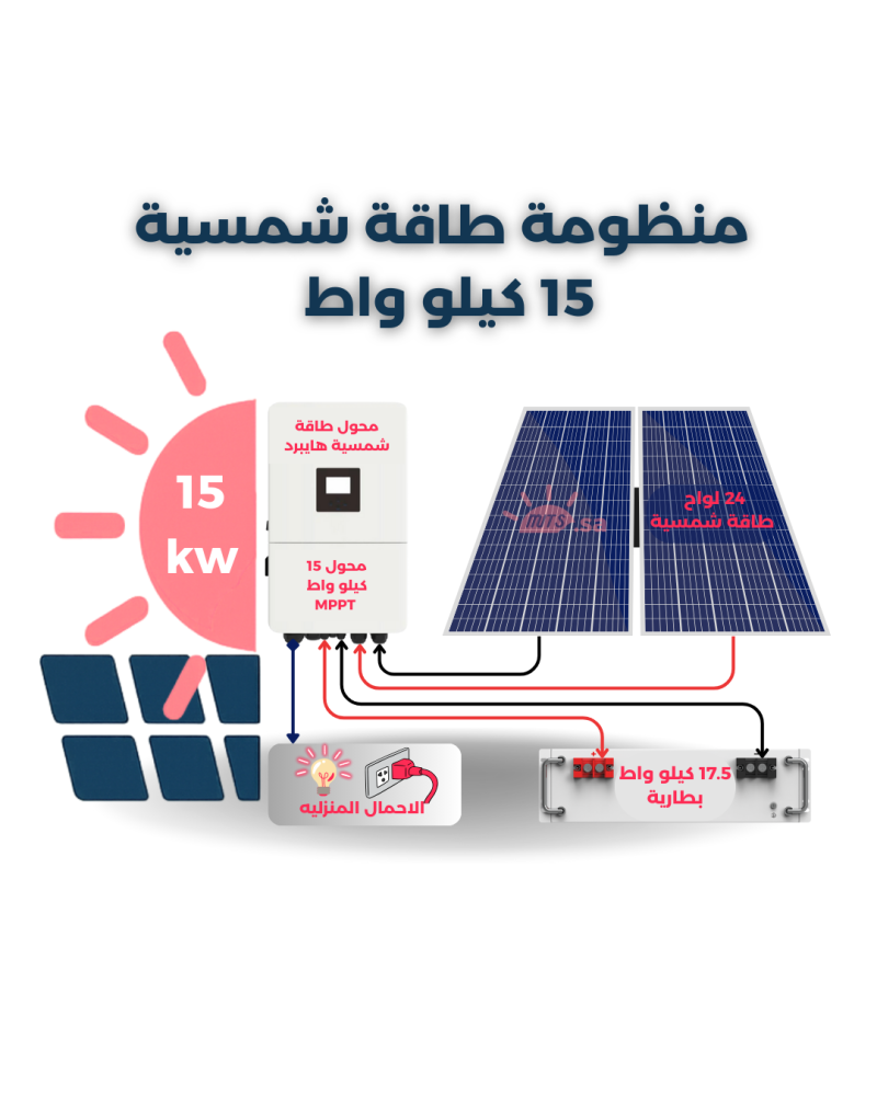 منظومة طاقة شمسية 15 كيلو واط للمنازل الكبيرة والمزارع