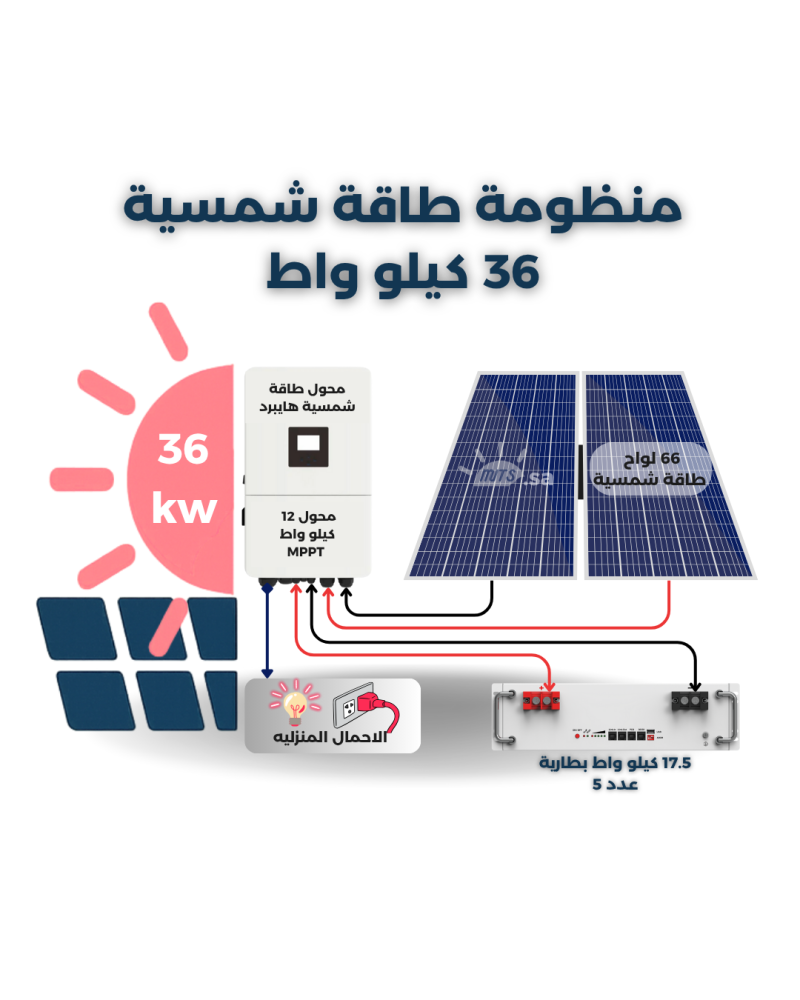 منظومة الطاقة الشمسية 36 كيلو واط مصممة لتغذية منزل أو استراحة متوسطة بشكل كامل.